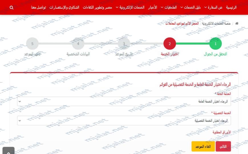 - اختيار “حجز موعد” من القائمة المنسدلة.