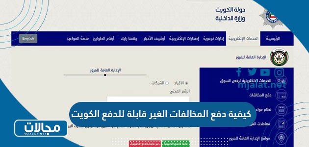 طريقة دفع المخالفات الغير قابلة للدفع أون لاين في الكويت
